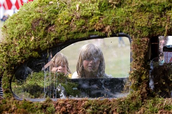 VW Beetle covered inside and outside with moss, which was carefully gathered by a specialist moss team, from sustainable sites and with permission from the Forestry Commission.